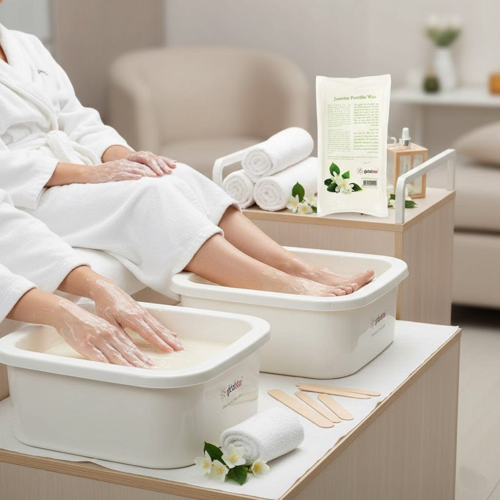 من الناحية التجميلية، يتم وضع شمع البارافين غالبًا على اليدين والقدمين. الشمع هو مرطب طبيعي، يساعد على جعل البشرة ناعمة وطرية. عند وضعه على الجلد، فإنه يضيف الرطوبة ويستمر في تعزيز مستويات الرطوبة في الجلد بعد العلاج. مكتمل.