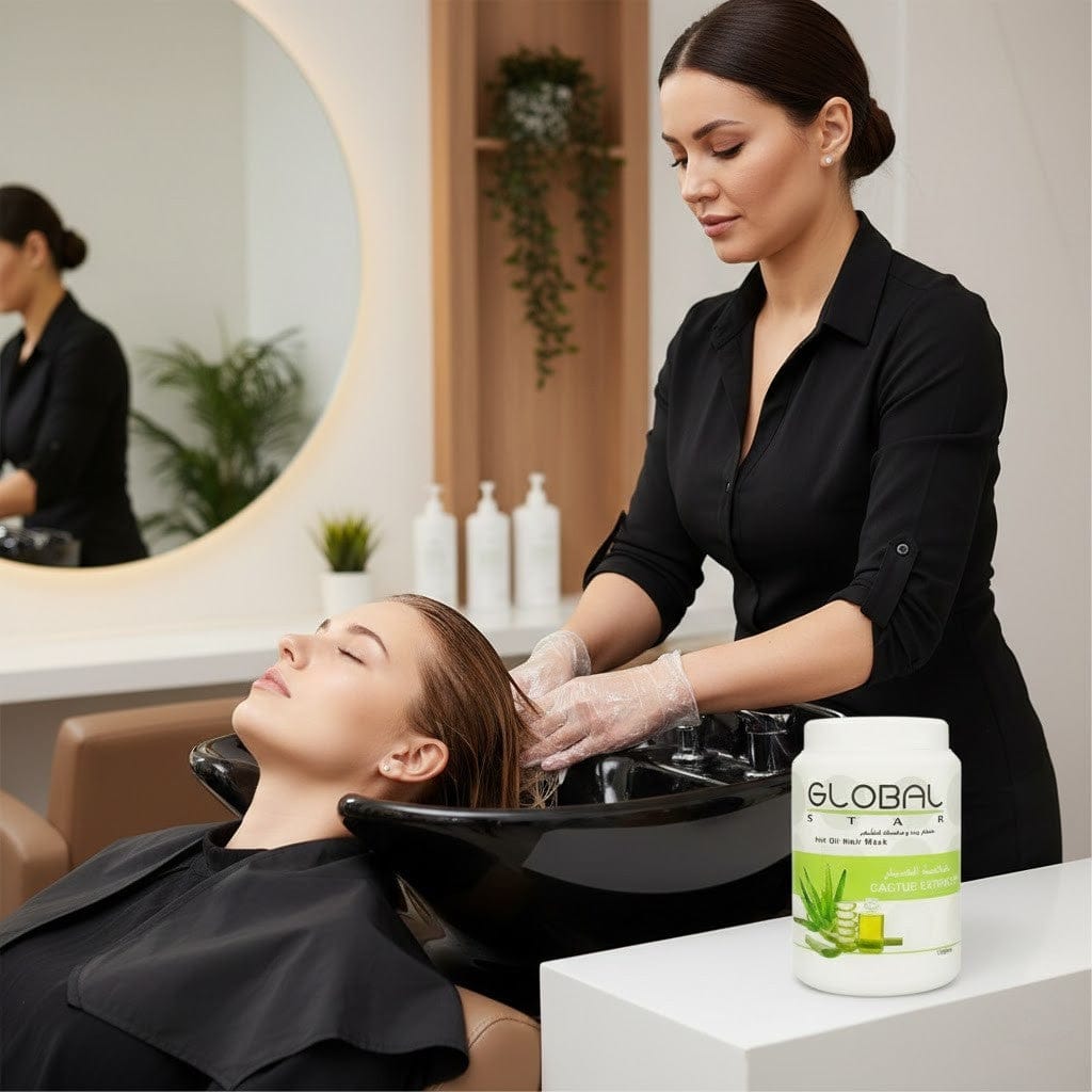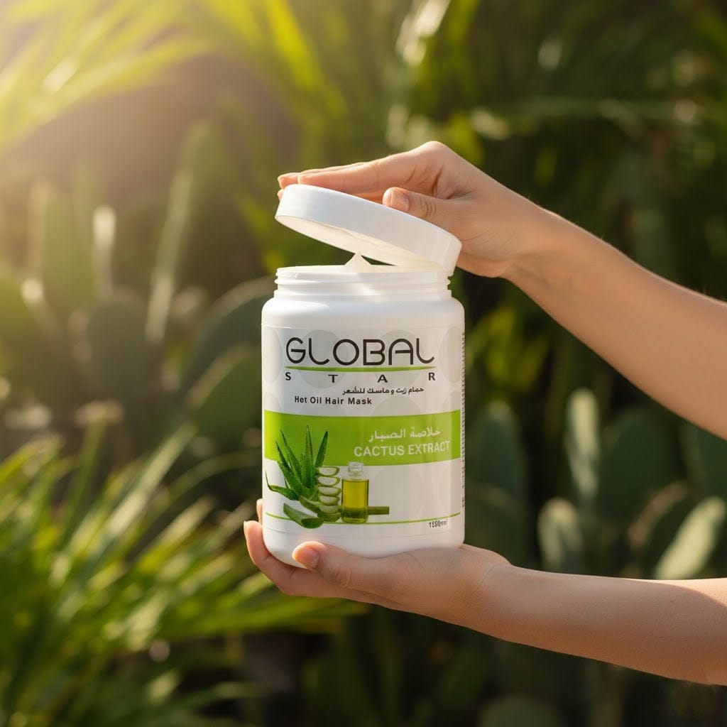 قناع الشعر بالزيت الساخن من جلوبال ستار بخلاصة الصبار 1500 مل