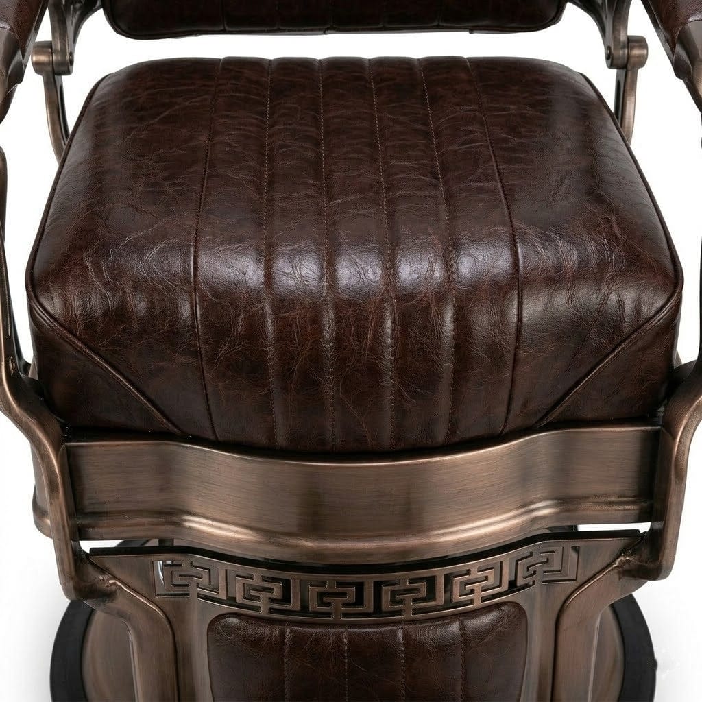GlobalStar 66-11 Vintage Barber Chair - Premium Leather Hydraulic Salon Chair with Adjustable Headrest & Ornate Bronze Frame