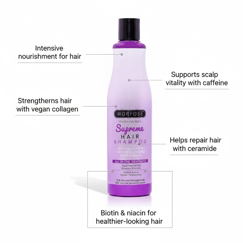 Revitalize your hair from root to tip with Morfose Hair Shampoo 500 ml, an intensive nourishing shampoo powered by a premium blend of Vegan Collagen, Caffeine, Ceramide, Biotin, and Niacin. Specially formulated for dry, damaged, or lifeless hair, this shampoo provides advanced care that strengthens, hydrates, and restores natural vibrancy.