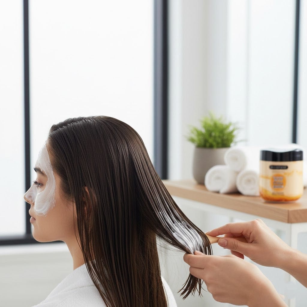 For best results, apply evenly from roots to ends, leave for 3–5 minutes (or 5–7 minutes for very dry hair), and rinse with lukewarm water. For enhanced absorption, cover hair with a towel or shower cap during treatment.