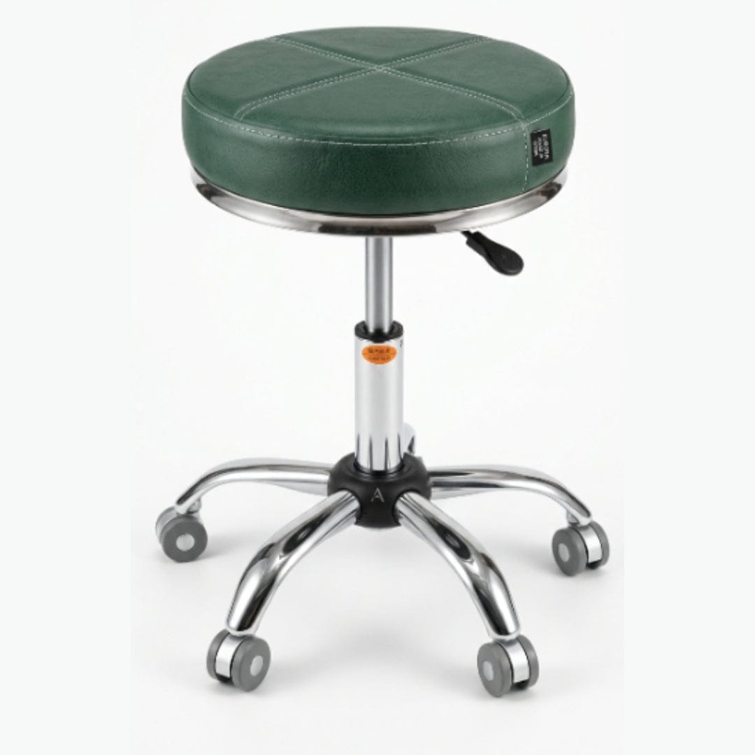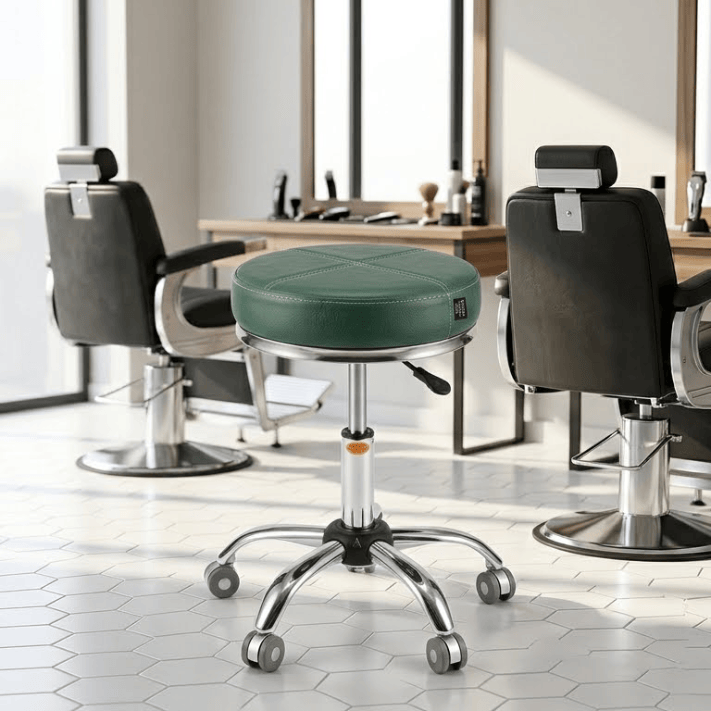 Professional salon stool with sage green leather seat