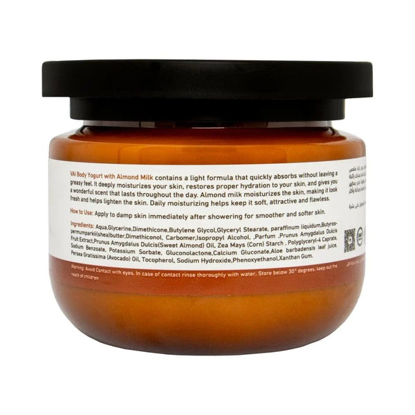 استمتعي بالترطيب الفاخر الذي يوفره لك زبادي الجسم بحليب اللوز من VAI Naturals سعة 280 مل. صُمم هذا الزبادي الغني والخفيف الوزن لترطيب بشرتك وتغذيتها بعمق، وذلك بفضل الفوائد الطبيعية لحليب اللوز. يمتص قوامه الناعم الشبيه بالزبادي بسرعة دون أي بقايا دهنية، مما يجعله مثاليًا لجميع أنواع البشرة. توفر رائحة اللوز الناعمة الدائمة لمسة منعشة لروتين العناية بالبشرة، مما يجعل كل استخدام تجربة تجديدية. مثالي للاستخدام اليومي، يساعد زبادي الجسم بحليب اللوز من VAI Naturals على الحفاظ على بشرتك ناعمة ورطبة ومعطرة برائحة رقيقة طوال اليوم.