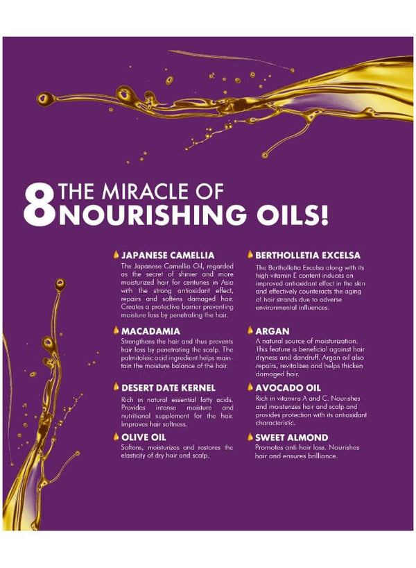 - Nourishing Herbal Complex: Enriched with a special herbal blend, including Japanese Camellia, Macadamia, Argan, Sweet Almond, Desert Date Kernel, Olive Oil, Avocado Oil, and Bertholletia Excelsa, to deeply nourish and condition your hair.