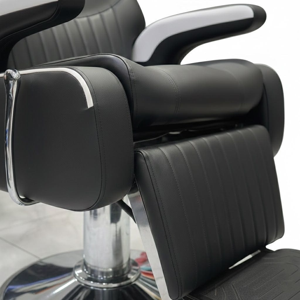 Comfort is at the core of this barber chair. The seat and backrest are thickly padded to provide clients with a relaxed, supportive sitting experience during haircuts, shaves and grooming services. The chair offers height adjustment and a reclining back, allowing barbers to position clients perfectly for detailed work while keeping them comfortable from start to finish.
