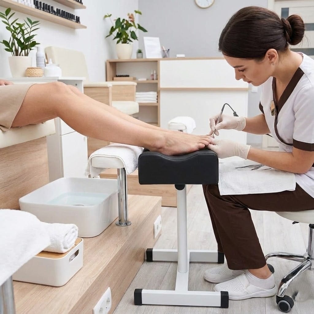 Ideal ergonomic support promotes technician posture and enhances client experience during pedicures.