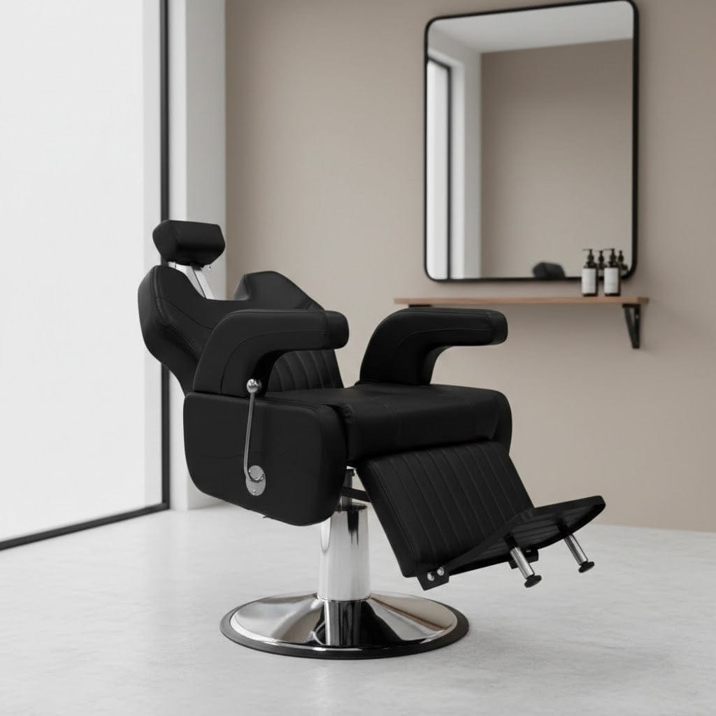 Built with durable, high-quality materials, this barber chair is designed to withstand frequent daily use without losing its shape or elegance. Its luxurious black color is easy to coordinate with any interior style, and the easy-to-clean upholstery helps maintain a neat, professional appearance over time.