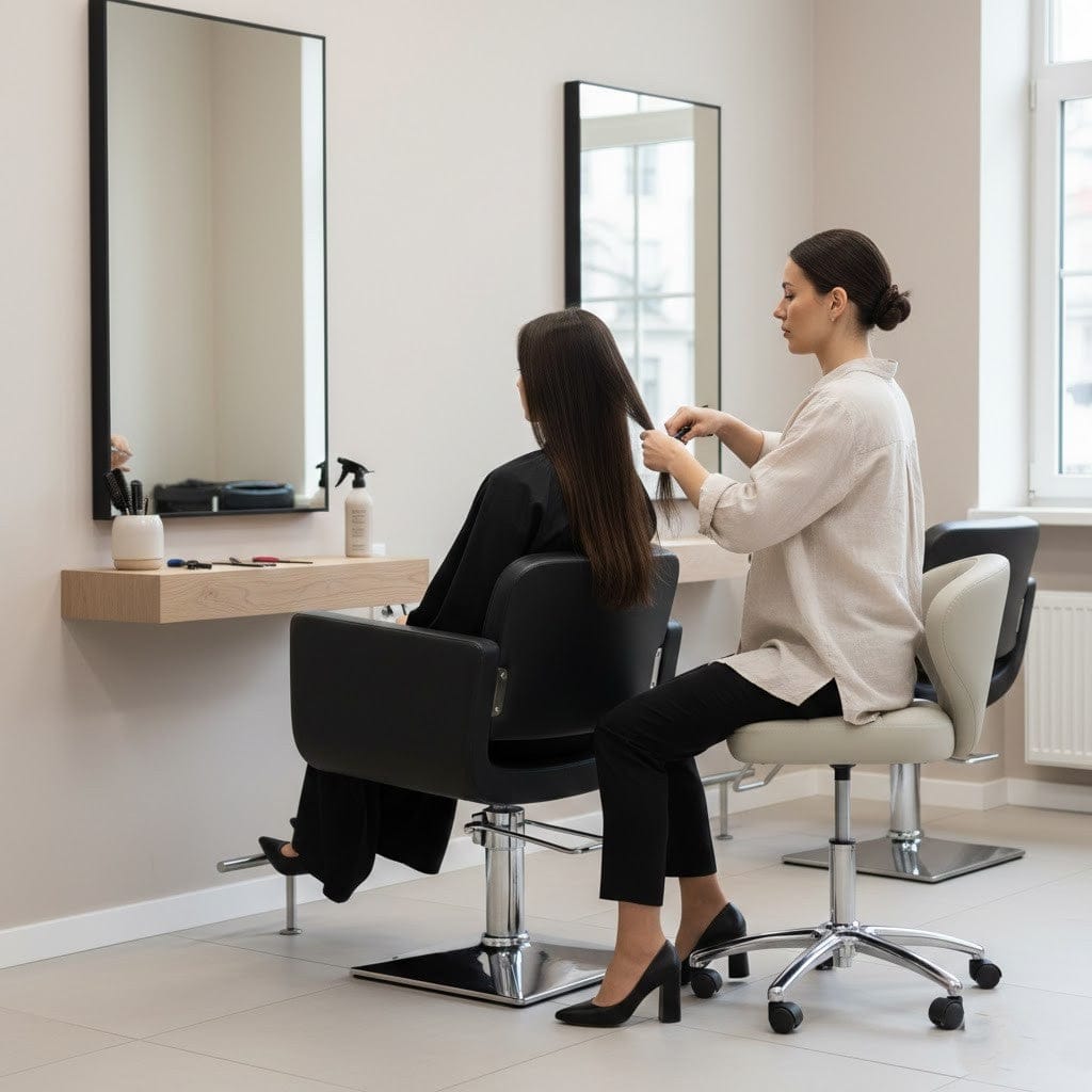 With its clean beige finish, premium leather upholstery, and robust construction, this multi-purpose stool elevates any space while delivering salon-grade reliability for daily use.