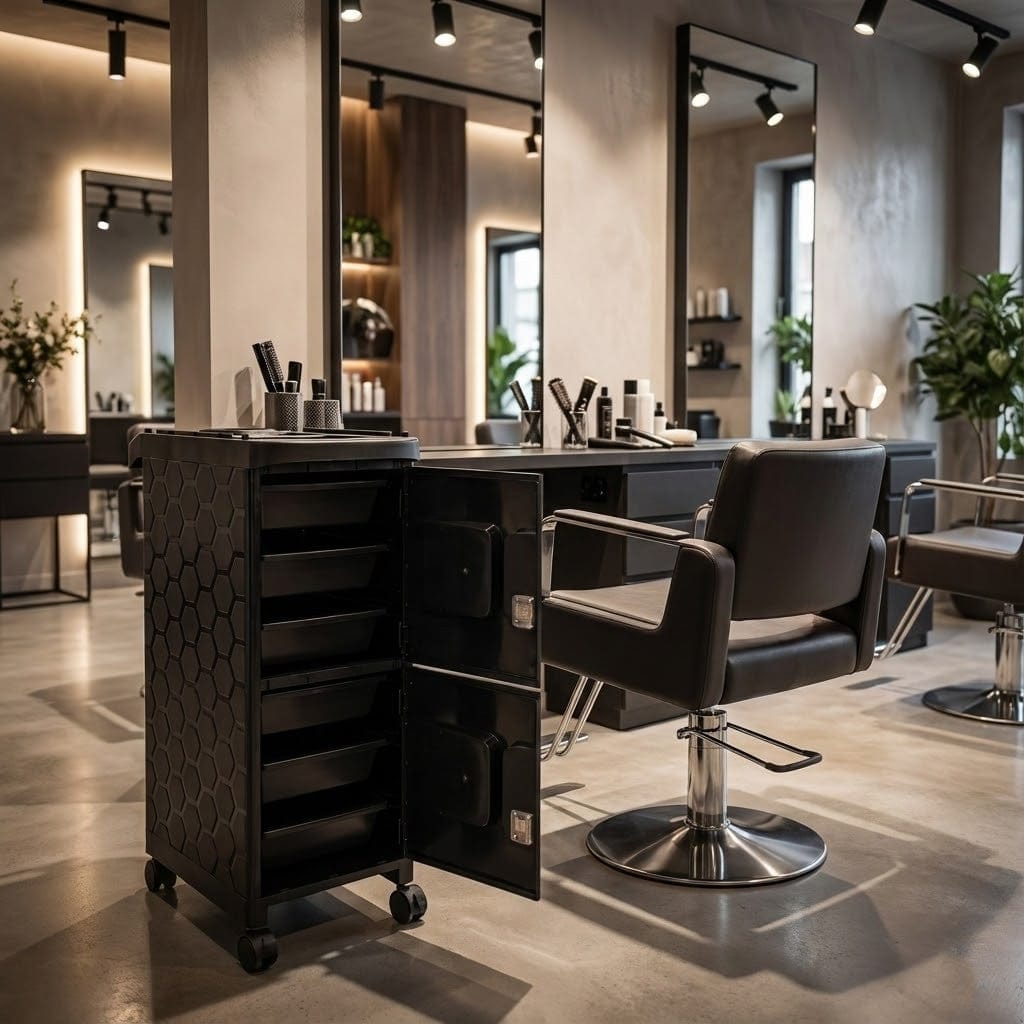 - Locking Metal Doors: Secure your tools and products with a lockable door, providing peace of mind in a busy salon environment.