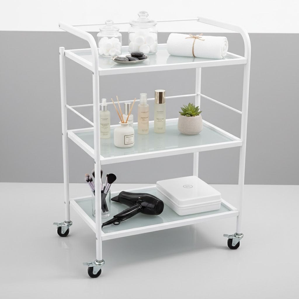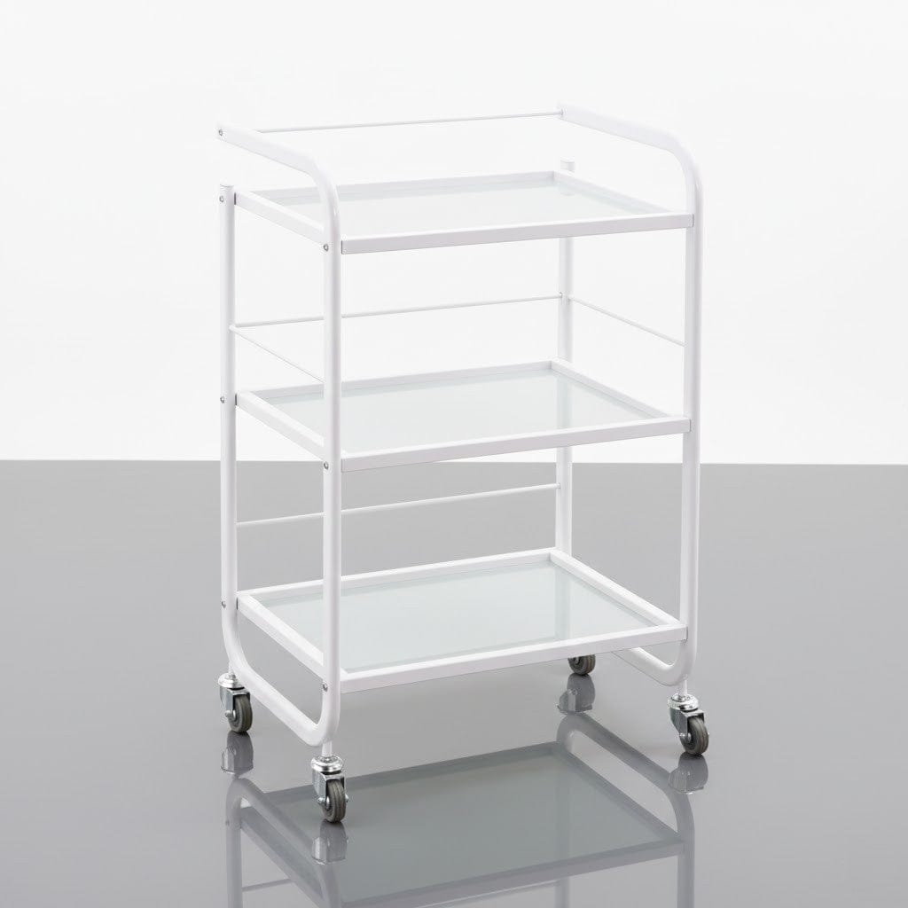 - Durable and Stable: Built with a sturdy white frame and high-quality frosted glass shelves, this trolley ensures long-lasting durability even in busy environments.