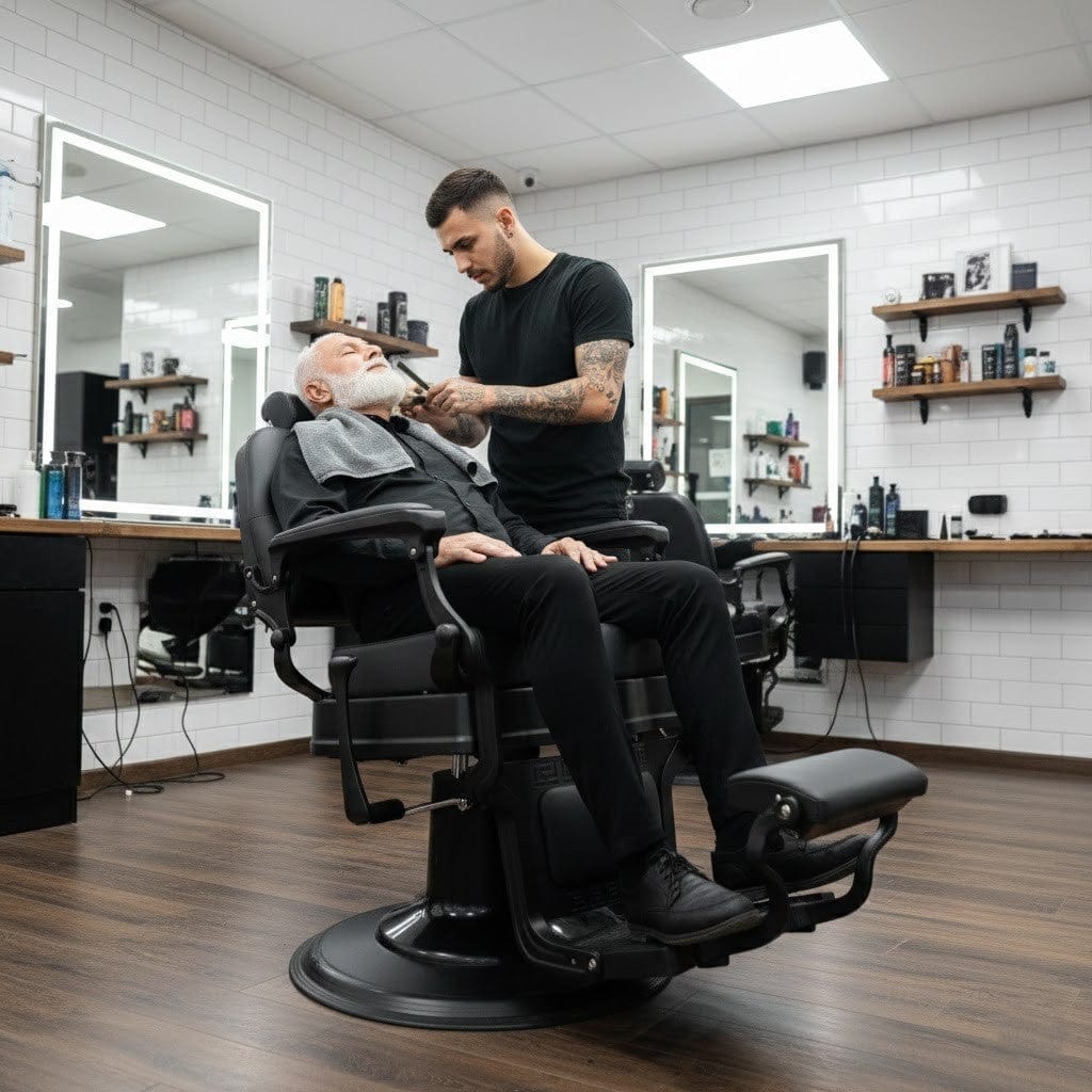• Ergonomic adjustability: Chair length controller and 360° swivel allow barbers to customize position and work efficiently from any angle.