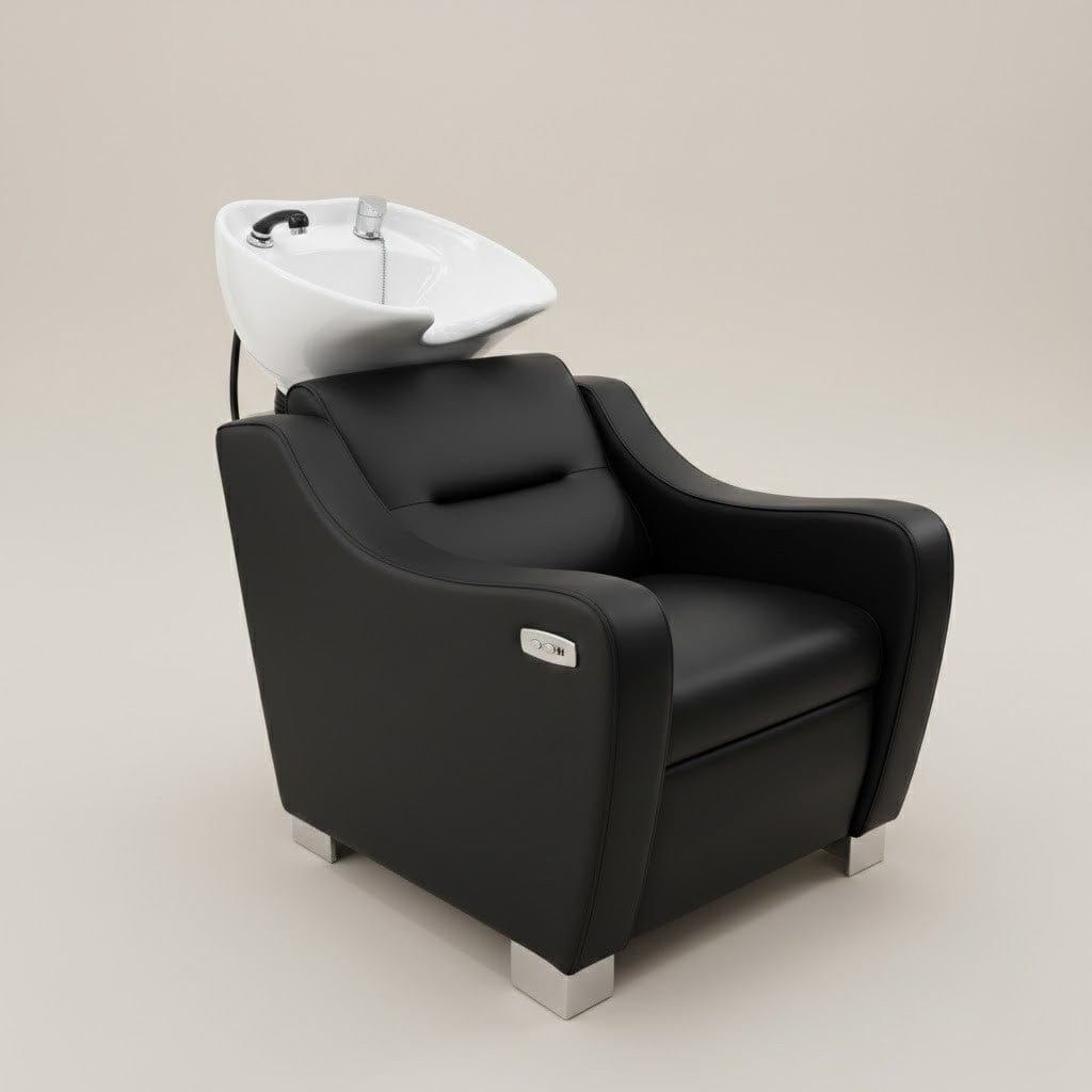 Designed for modern salons, the comfy black chair provides superior ergonomic support with soft upholstery that cradles the neck and back, while the integrated basin ensures efficient rinsing. The built-in USB port lets clients charge devices during services, enhancing their experience in a tech-savvy environment. Its sleek black finish complements contemporary salon decor without sacrificing durability for daily use.
