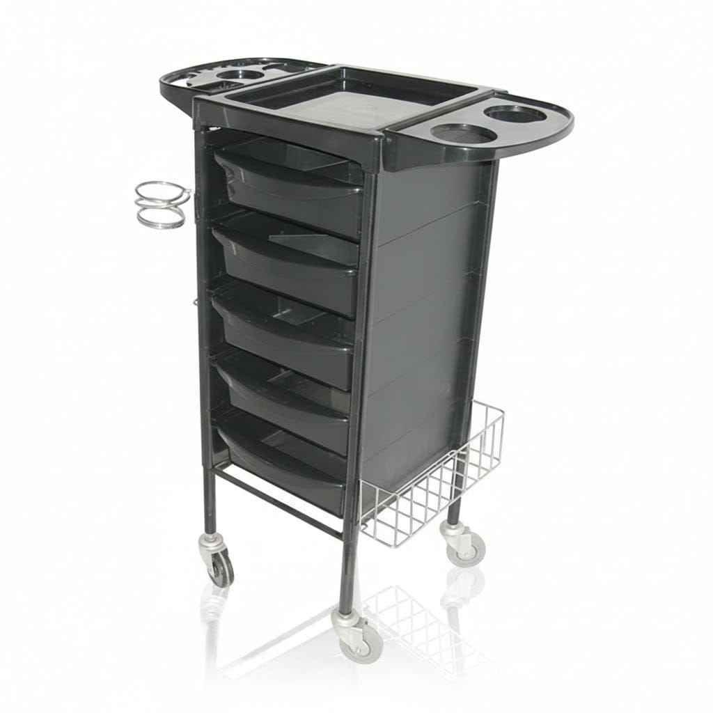 Globalstar Black Salon Trolley – Metal Frame with 5 Spacious PVC Drawers, Retractable Shelves, and Hairdryer Holder (M3013B)