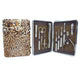 Stainless steel portable travel grooming kit. Professional manicure kit contains nail and toenail tools, multifunctional include hand care, facial care, foot care and tool cleaning brush. The manicure set comes with a portable synthetic leather case that can be easily opened with the push of a button.