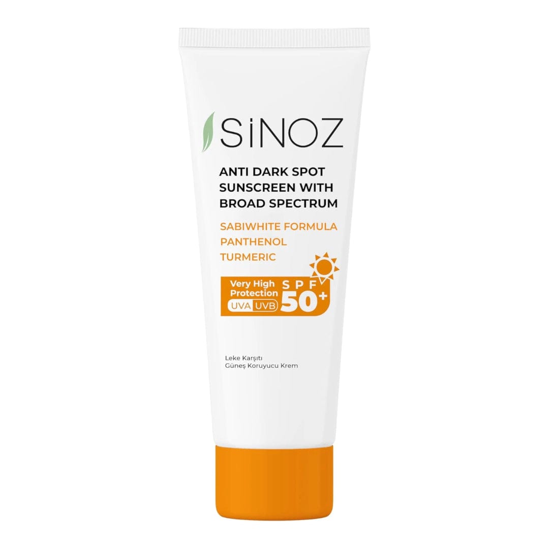 Sinoz Anti-Dark Spot Sunscreen SPF 50+ provides advanced broad-spectrum defense against sun damage, dark spots, and skin discoloration. This daily sunscreen cream is enriched with effective actives—turmeric extract, vitamin E, panthenol, and niacinamide—to hydrate, reinforce the skin barrier, and visibly brighten skin tone. The lightweight, quick-absorbing formula leaves no oily or white residue, making it ideal for all skin types and effortless to wear under makeup.