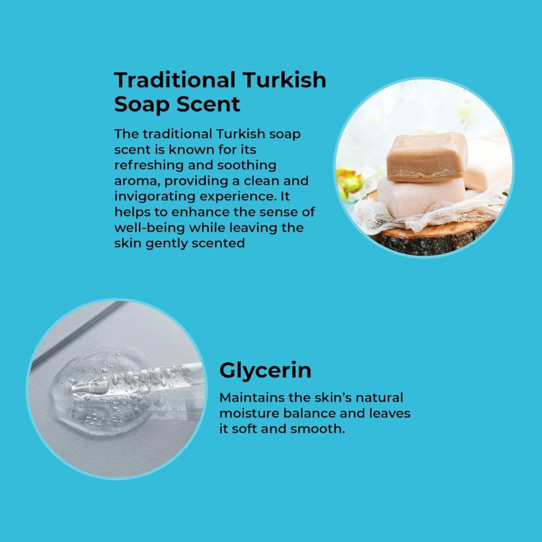 Transform your daily shower into a luxurious ritual with The Bath Factory Hamamm Shower Gel, a gentle formula inspired by the aromatic traditions of Turkish hammams. This rejuvenating gel effectively removes dirt and impurities while preserving your skin’s natural moisture barrier, leaving it feeling clean, moisturized, and radiant. Enriched with glycerin and non-irritating cleansers, the shower gel not only purifies but also reveals vibrant, glowing skin.