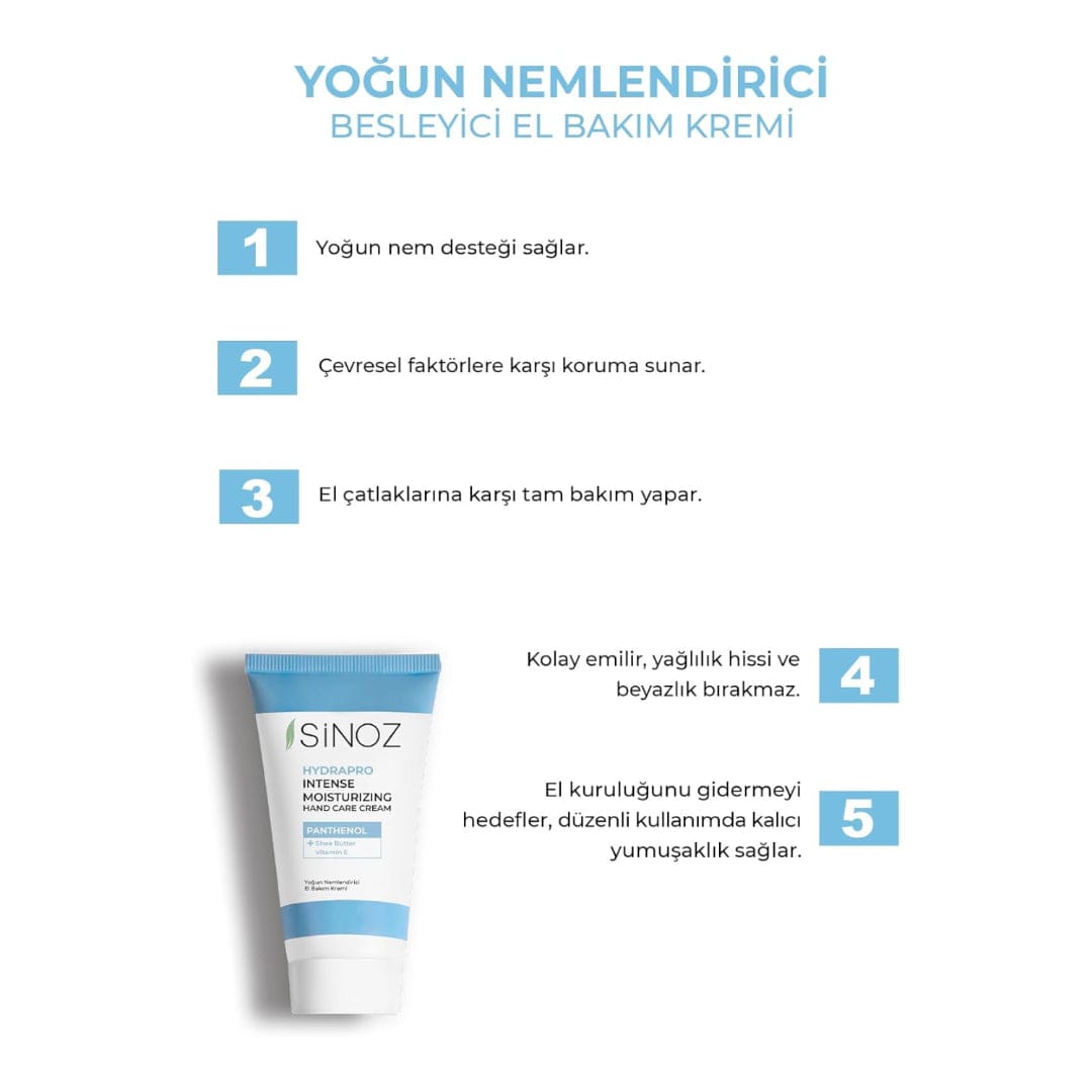 Sinoz Intensive Moisturizing Hand Cream – Deep Hydration & Repair with Shea Butter & Panthenol, 50ml