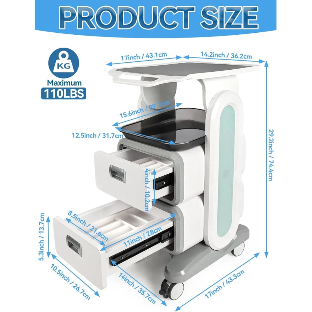 Upgrade your workspace with the Globlastar Multi-Use Medical, Salon, and Spa Trolley Cart, a professional-grade rolling storage solution designed for convenience, durability, and versatility. Crafted from high-quality ABS and steel materials, this trolley cart is lightweight yet capable of holding up to 110 lbs, making it ideal for both professional and personal use.
