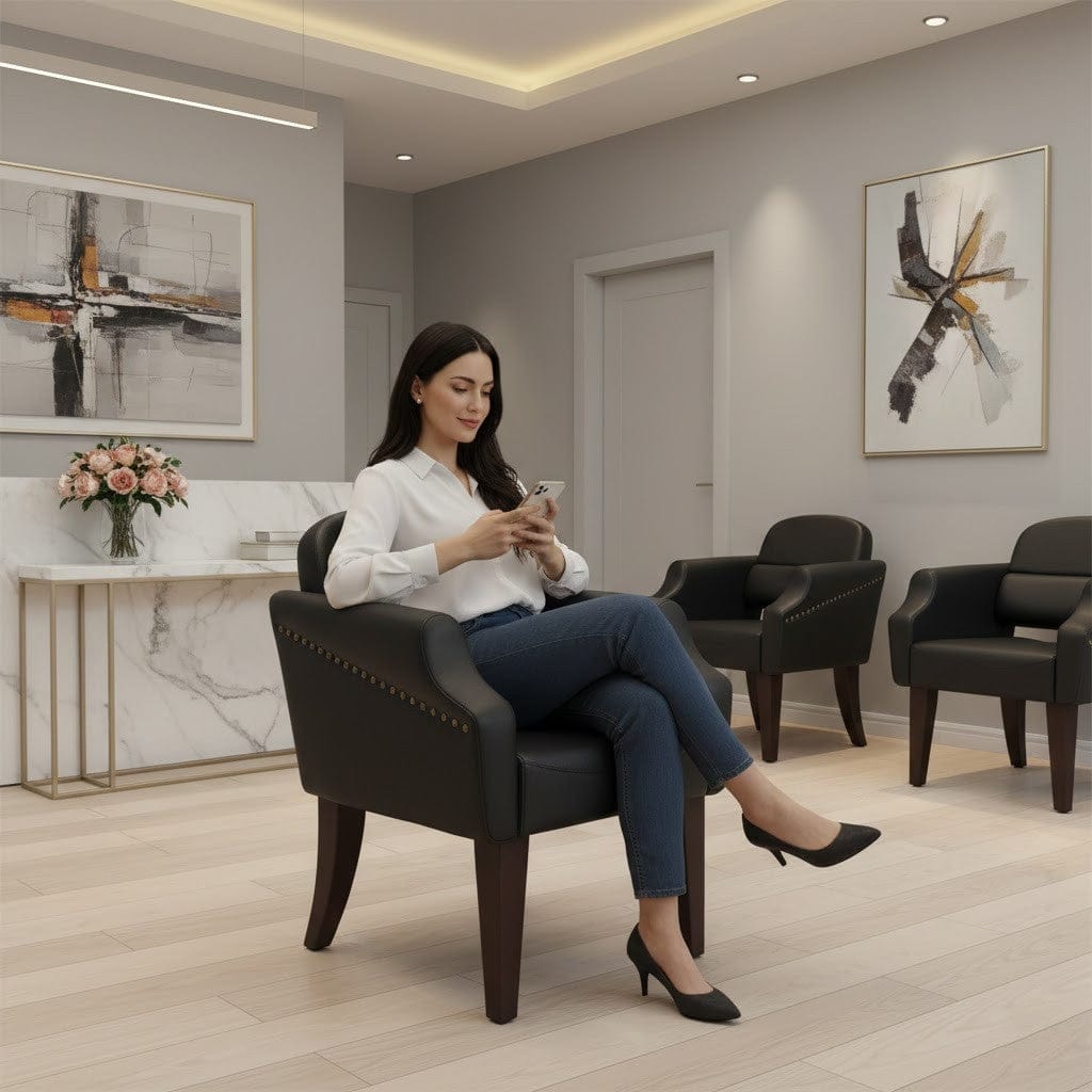 Comfort with support: Built to support the back and neck, providing a relaxed sitting experience for clients or guests.