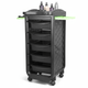 عربة سوداء هي عربة أدوات تصفيف الشعر المهنية. معتمد ، عالي الجودة ، متين ، بلاستيك ، ضمان الجودة