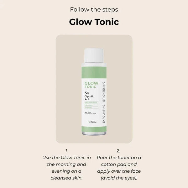 Reveal smoother, clearer, and more balanced skin with Sinoz Glow Tonic—a powerful, serum-effective tonic designed to deeply cleanse, tighten pores, and refine skin texture for all skin types. Infused with a potent blend of salicylic acid and glycolic acid (AHA/BHA), this formula penetrates deep to gently exfoliate both the skin surface and inside pores, eliminating dead skin cells, reducing blackheads, and controlling shine. Niacinamide brightens and evens skin tone, visibly minimizes pores, and regulates excess sebum for a healthy, matte finish.