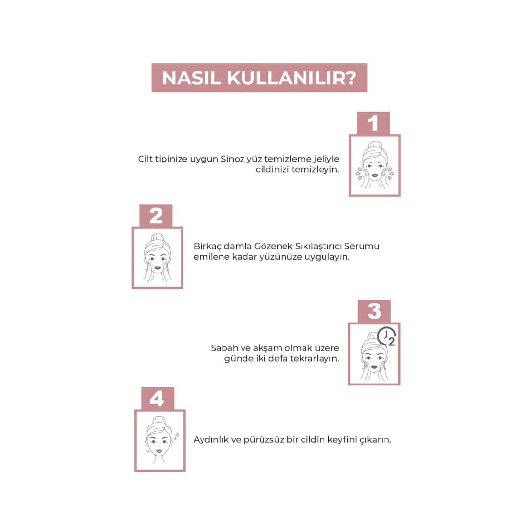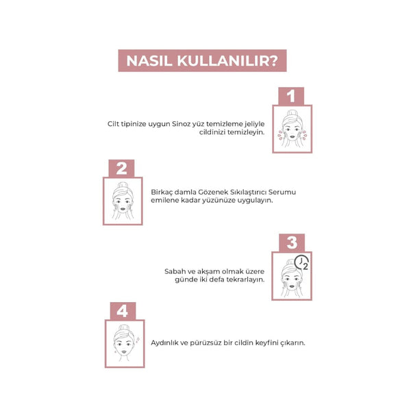Apply a few drops on cleansed skin twice daily and massage gently until absorbed. For best results, use consistently for at least three months to achieve smoother, firmer, and more balanced skin with minimized pores.