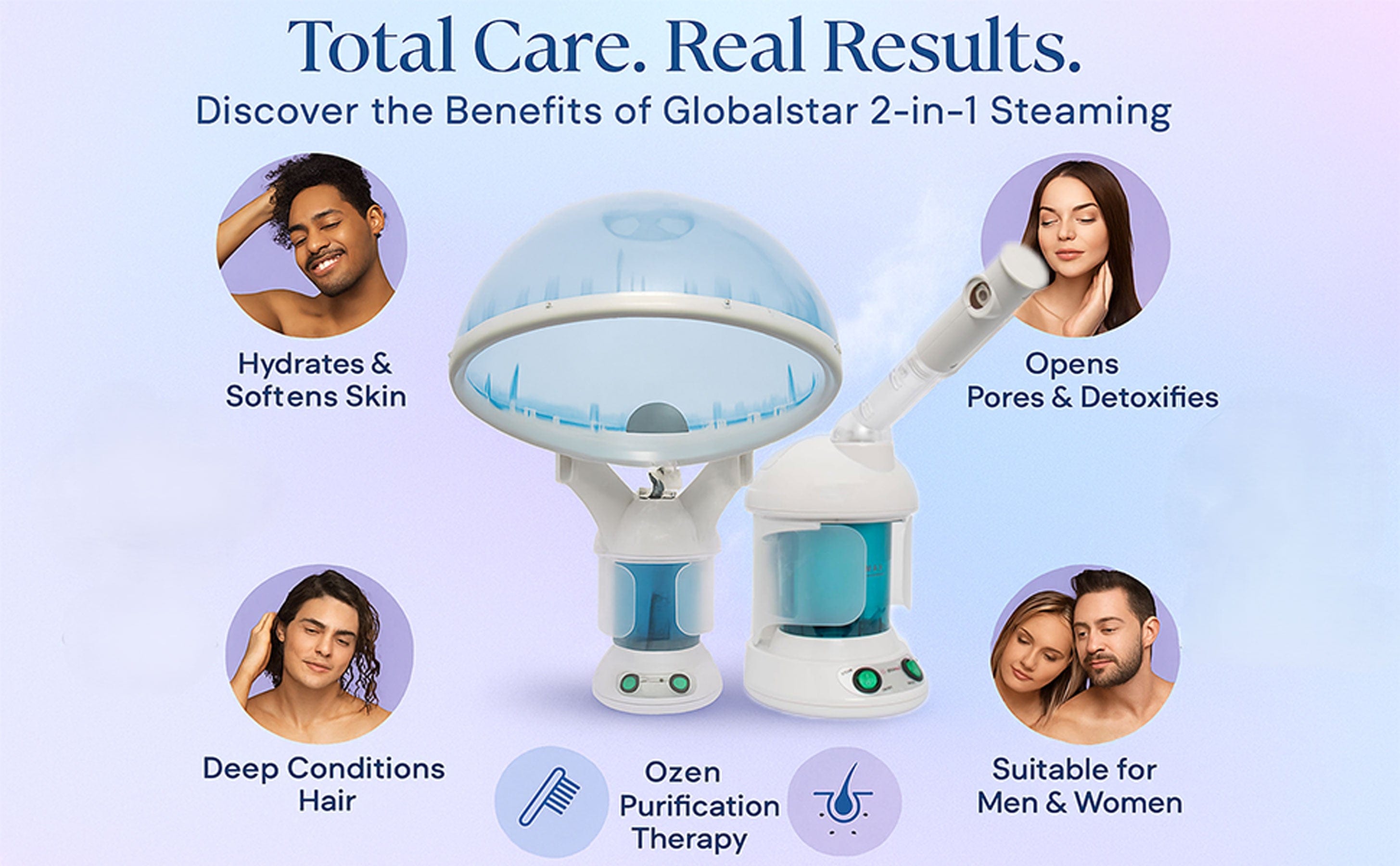 - Table top 2 in 1 mini application: hair steamer for treating brittle & damaged hair and facial steamer for treating pores & dry skin.
