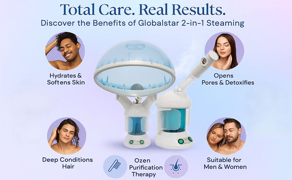 2 in 1 application: Hair Steamer (treating brittle & damaged hair) and Facial Steamer (treating pores & dry skin). It provides valuable nutrients to unhealthy hair and treat brittle & damaged hair.It is ideal for treating pores & dry skin and also reduces blemishes, acne & more.